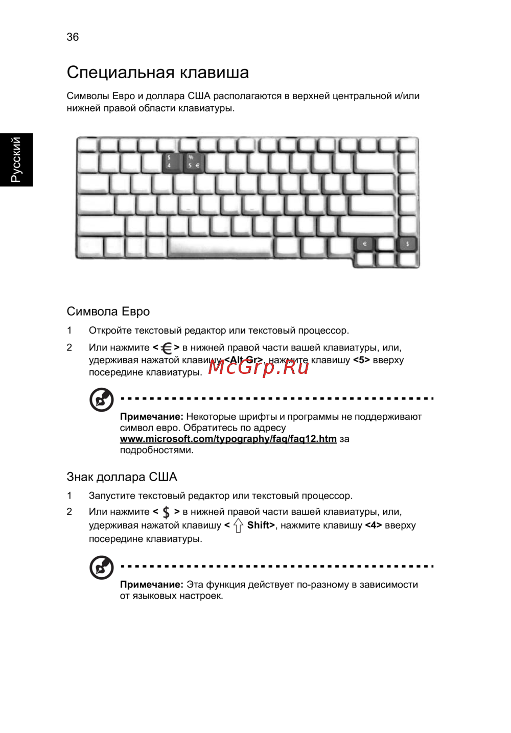 Примечание: Некоторые шрифты и программы не поддерживают