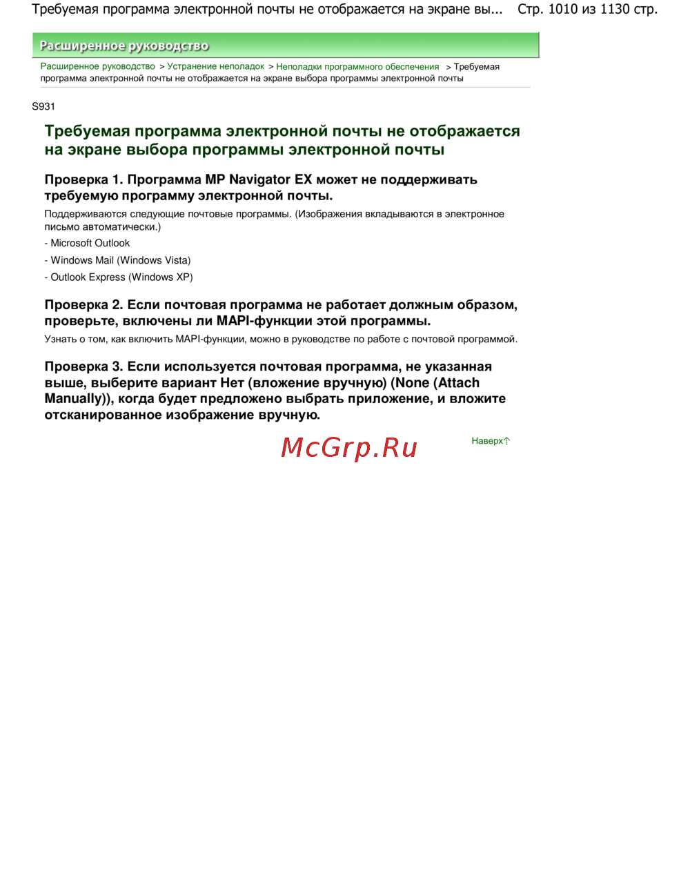 Canon Pixma MG6140 — устранение неполадок с программами электронной почты: руководство [1010/1130]