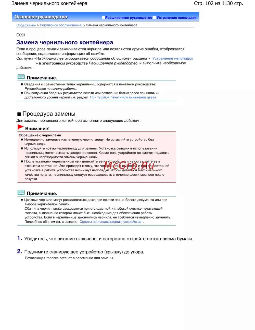 Стр. 102 из 1130 стр.Замена чернильного контейнера