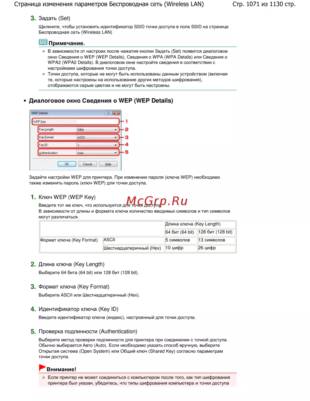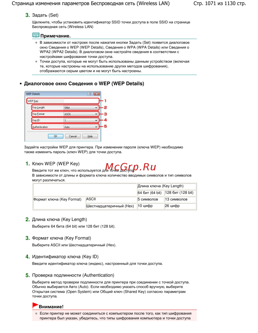 Canon Pixma MG6140 — настройка беспроводной сети и шифрования для устройств [1071/1130]