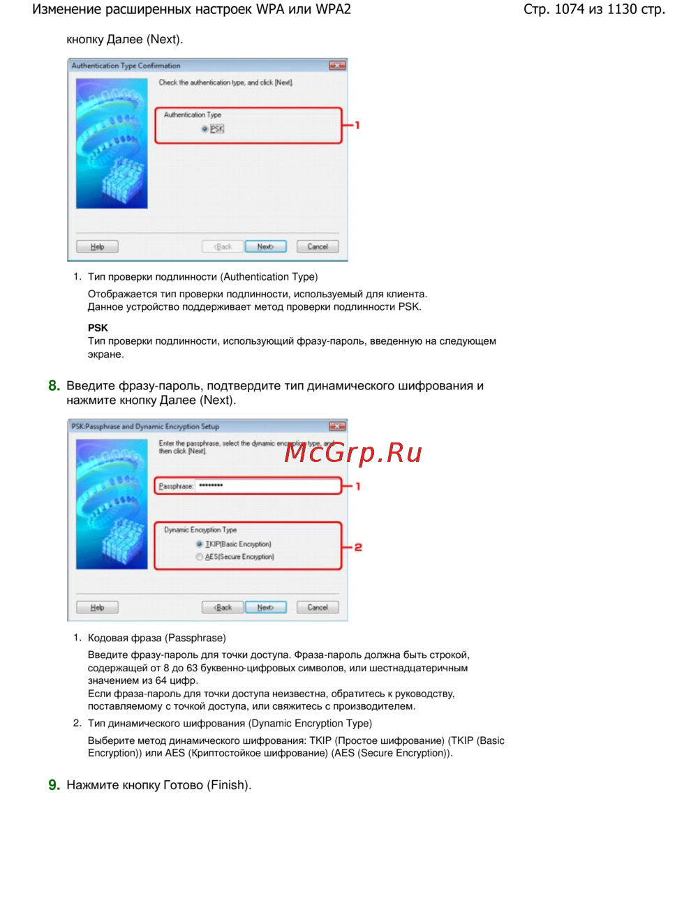Стр. 1074 из 1130 стр.Изменение расширенных настроек WPA или WPA2