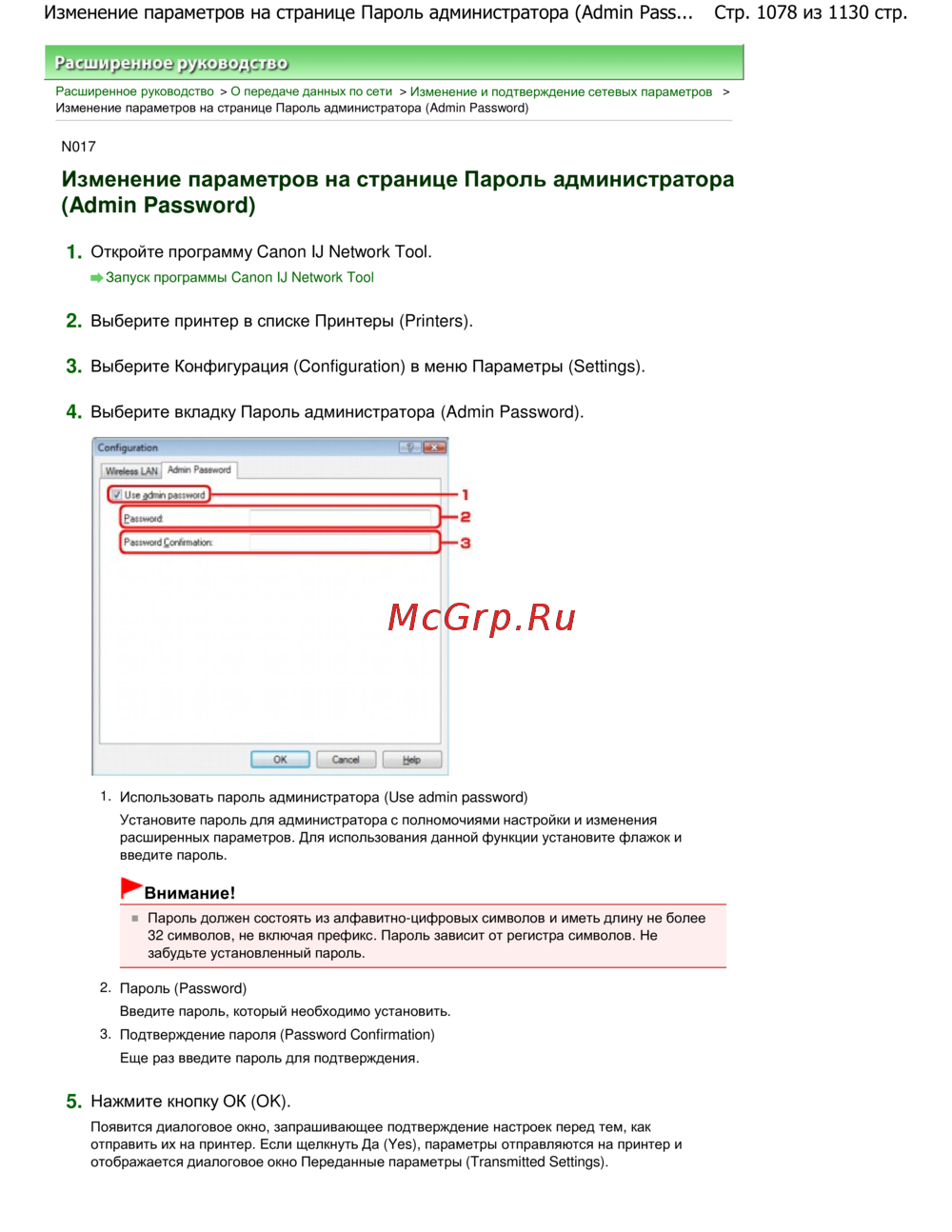 Стр. 1078 из 1130 стр.Изменение параметров на странице Пароль администратора (Admin Pass...