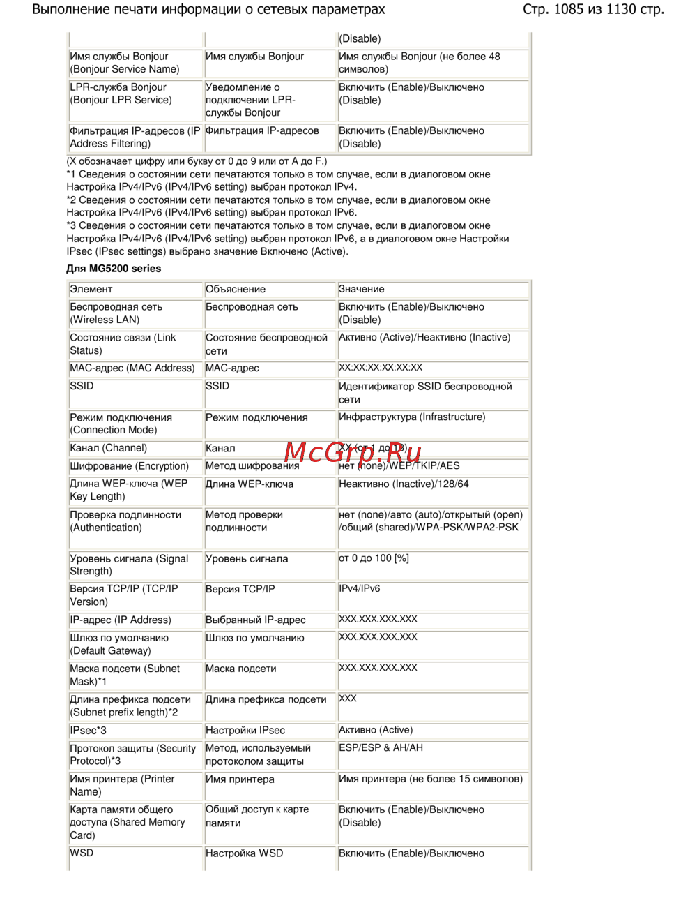 Стр. 1085 из 1130 стр.Выполнение печати информации о сетевых параметрах