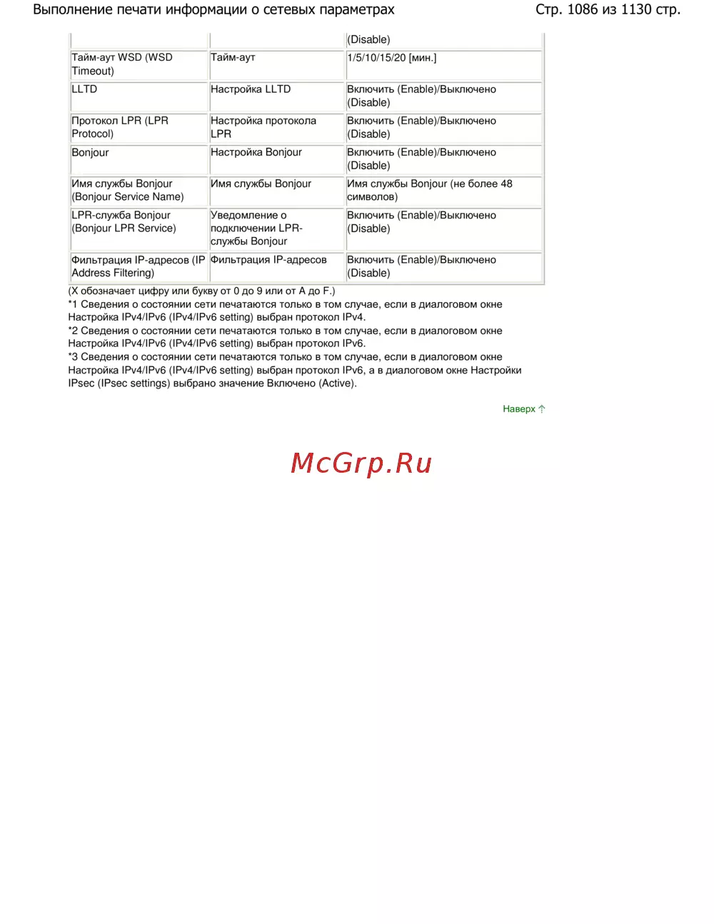 Стр. 1086 из 1130 стр.Выполнение печати информации о сетевых параметрах