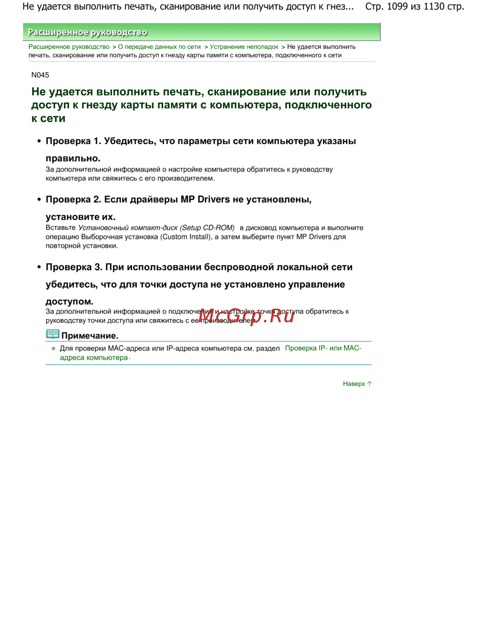 Canon Pixma MG6140 — устранение неполадок печати и сканирования в сети [1099/1130]