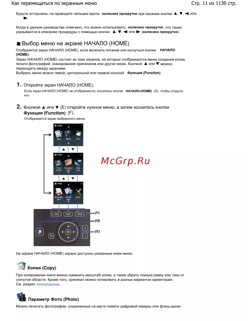 Стр. 11 из 1130 стр.Как перемещаться по экранным меню