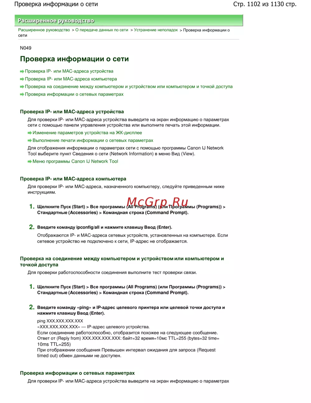 Canon Pixma MG6140 — проверка сетевой информации: инструкции по IP/MAC-адресам и тестам связи [1102/1130]