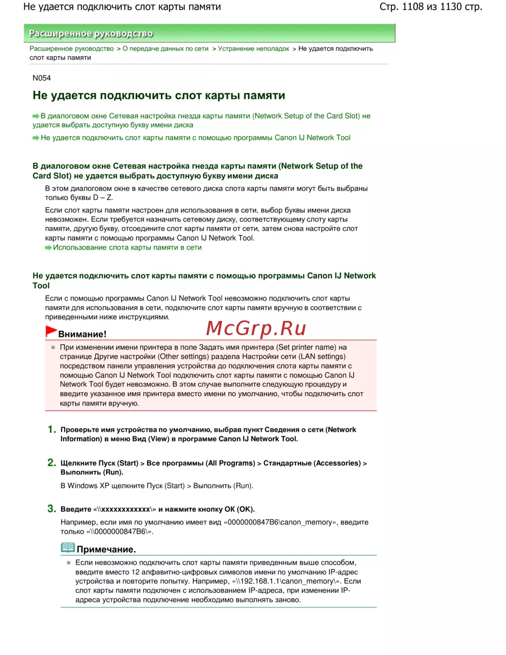 Canon Pixma MG6140 — устранение неполадок подключения слота карты памяти в сети [1108/1130]