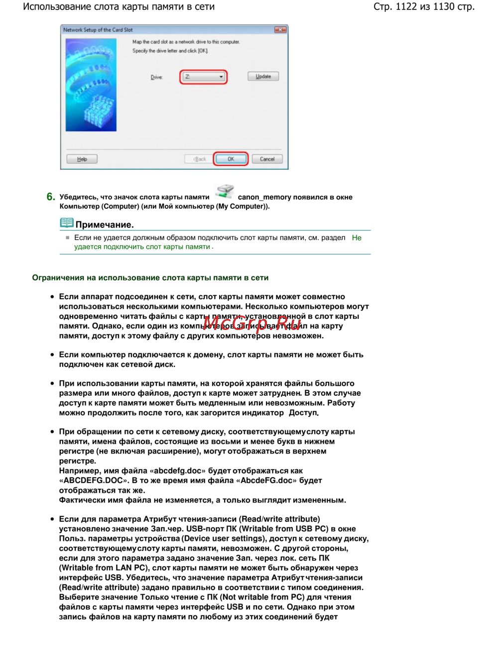 Canon Pixma MG6140 — как правильно использовать слот карты памяти в сети и на компьютере [1122/1130]