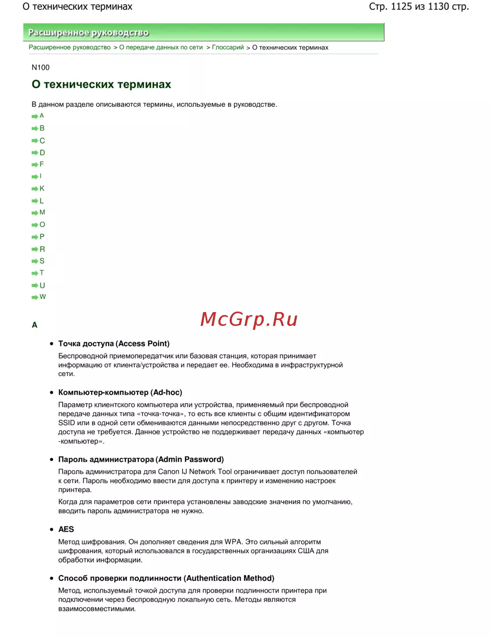 Canon Pixma MG6140 — глоссарий технических терминов для передачи данных по сети [1125/1130]