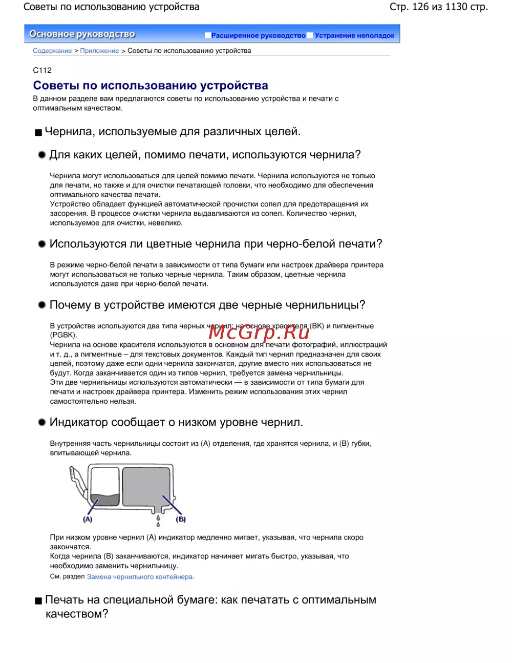 Canon Pixma MG6140 — советы по использованию устройства для печати и ухода за чернилами [126/1130]