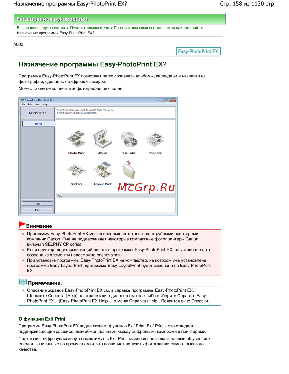 Стр. 158 из 1130 стр.Назначение программы Easy-PhotoPrint EX?