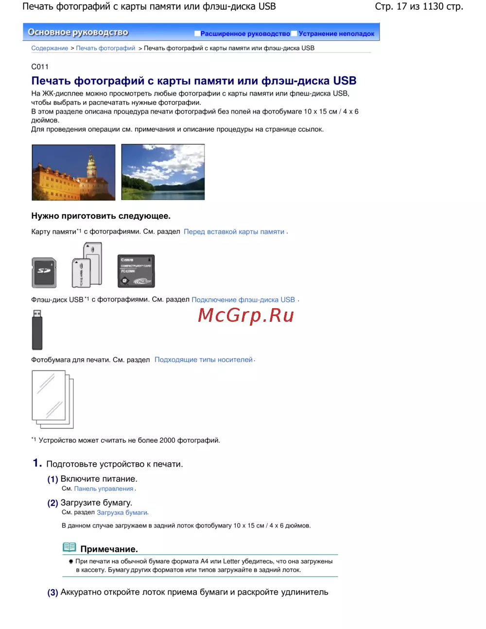 Стр. 17 из 1130 стр.Печать фотографий с карты памяти или флэш-диска USB