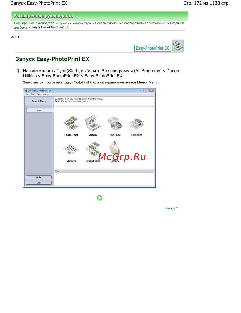 Стр. 172 из 1130 стр.Запуск Easy-PhotoPrint EX