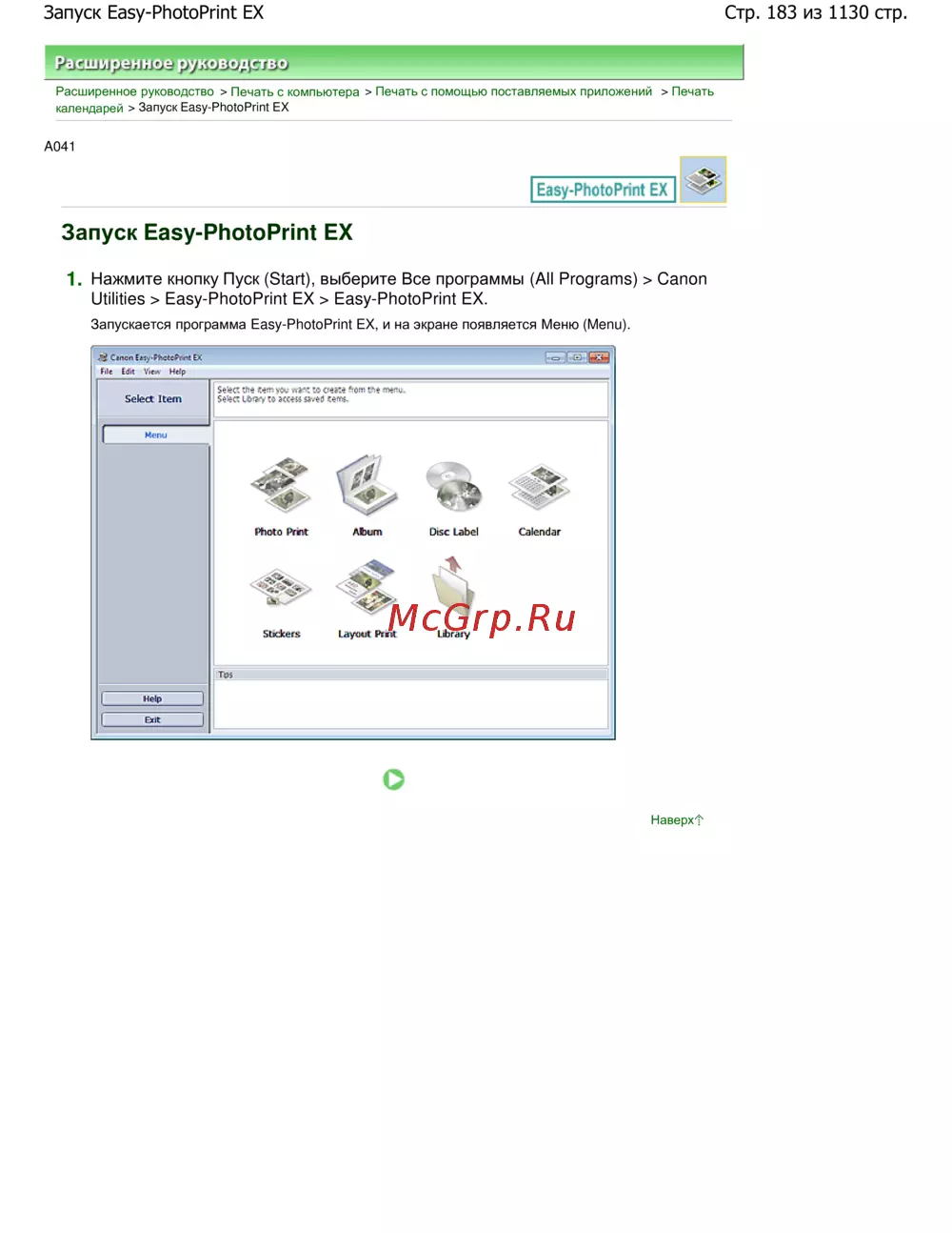 Стр. 183 из 1130 стр.Запуск Easy-PhotoPrint EX