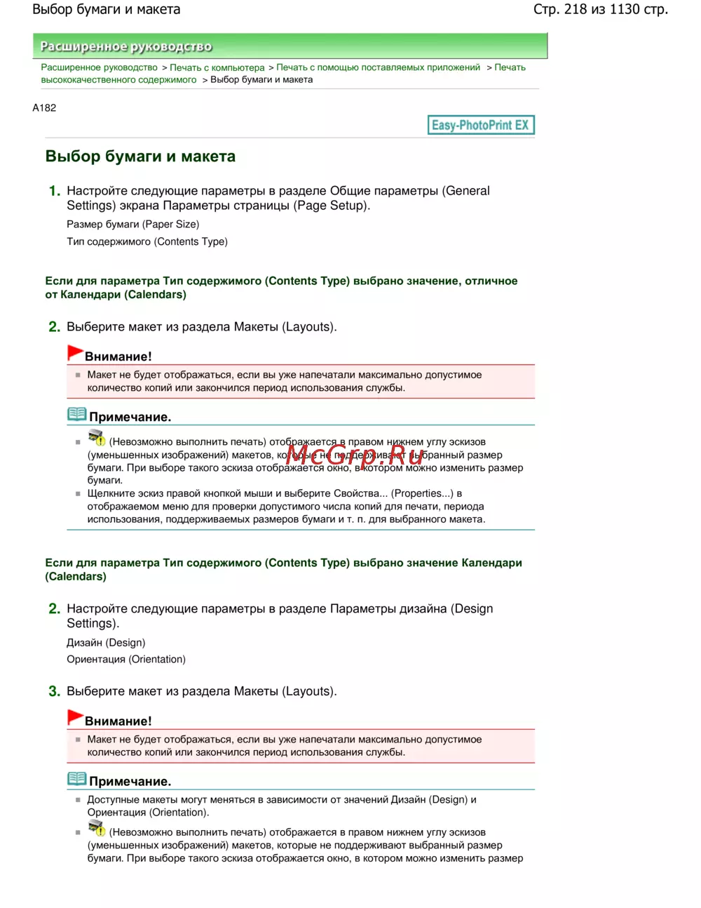 Стр. 218 из 1130 стр.Выбор бумаги и макета