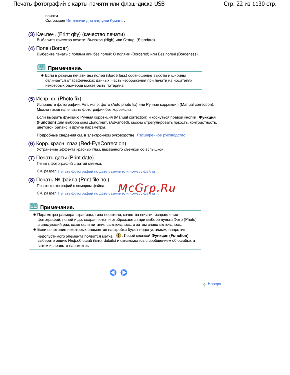 Стр. 22 из 1130 стр.Печать фотографий с карты памяти или флэш-диска USB