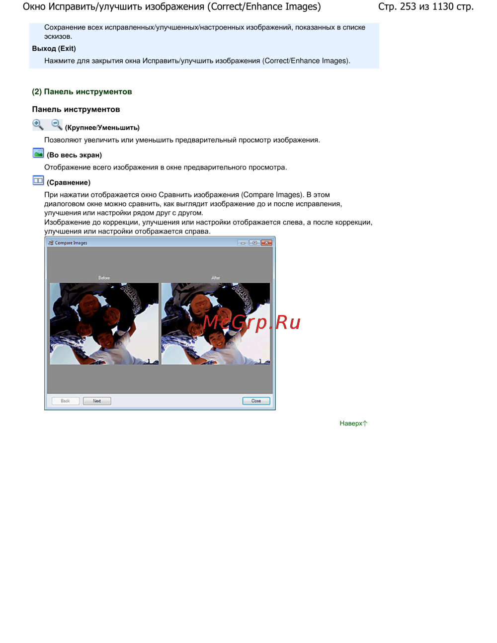 Стр. 253 из 1130 стр.Окно Исправить/улучшить изображения (Correct/Enhance Images)