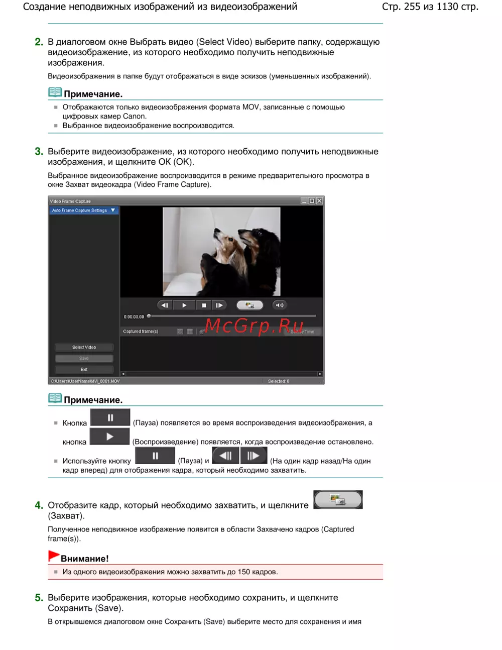 Стр. 255 из 1130 стр.Создание неподвижных изображений из видеоизображений