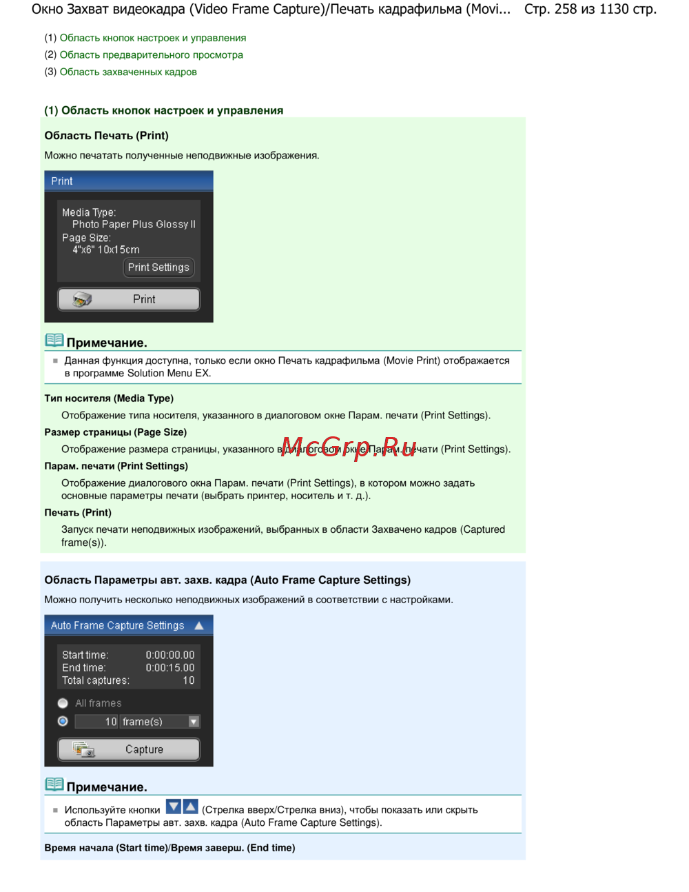 Стр. 258 из 1130 стр.Окно Захват видеокадра (Video Frame Capture)/Печать кадрафильма (Movi...