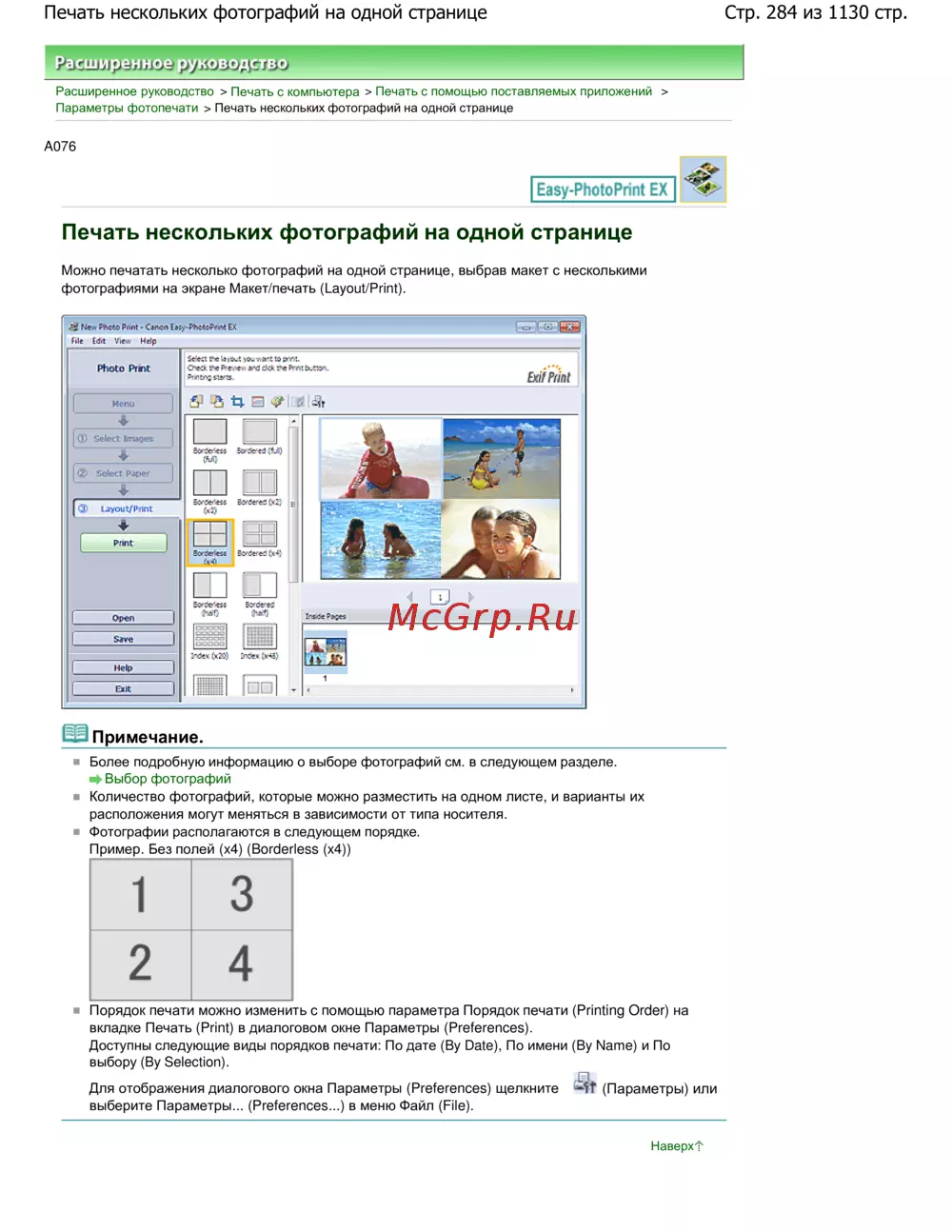 Стр. 284 из 1130 стр.Печать нескольких фотографий на одной странице