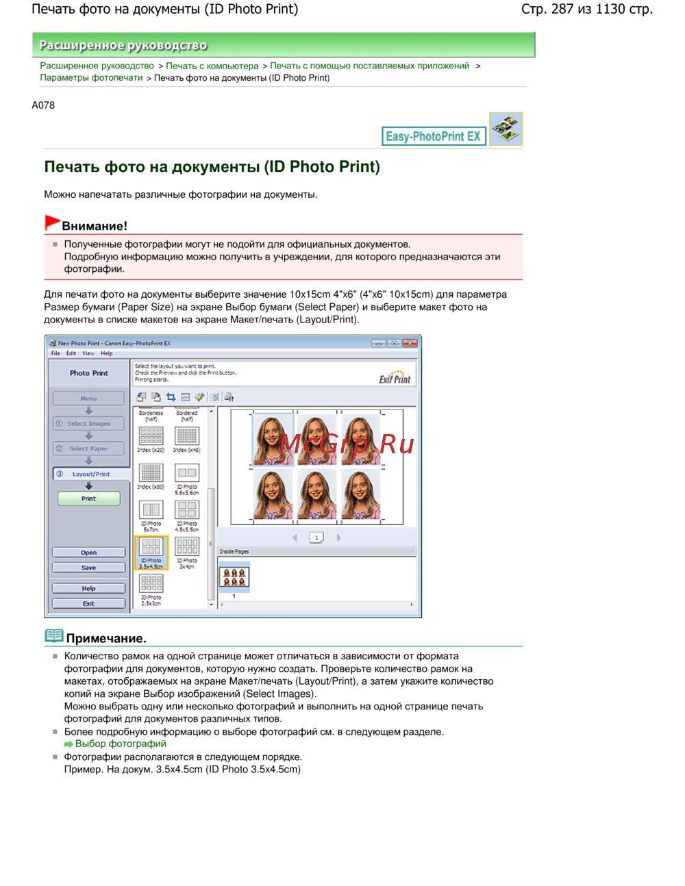 Стр. 287 из 1130 стр.Печать фото на документы (ID Photo Print)