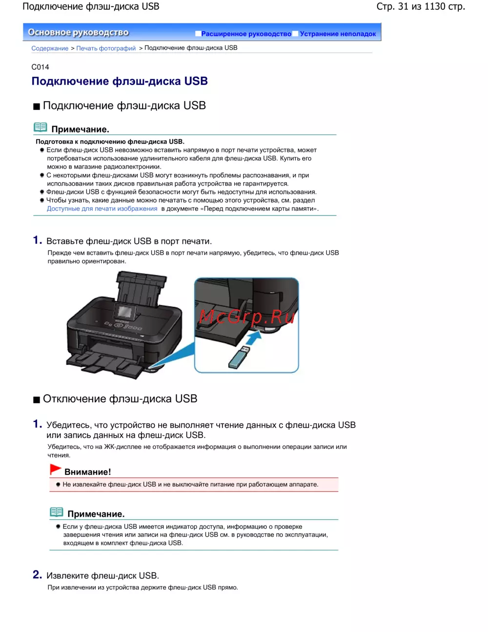 Canon Pixma MG6140 — руководство по подключению и отключению флэш-диска USB [31/1130]