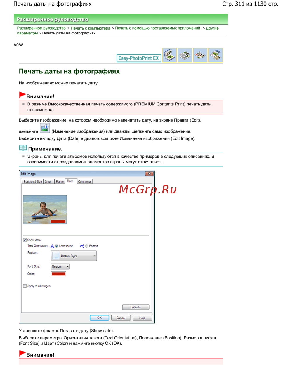 Стр. 311 из 1130 стр.Печать даты на фотографиях