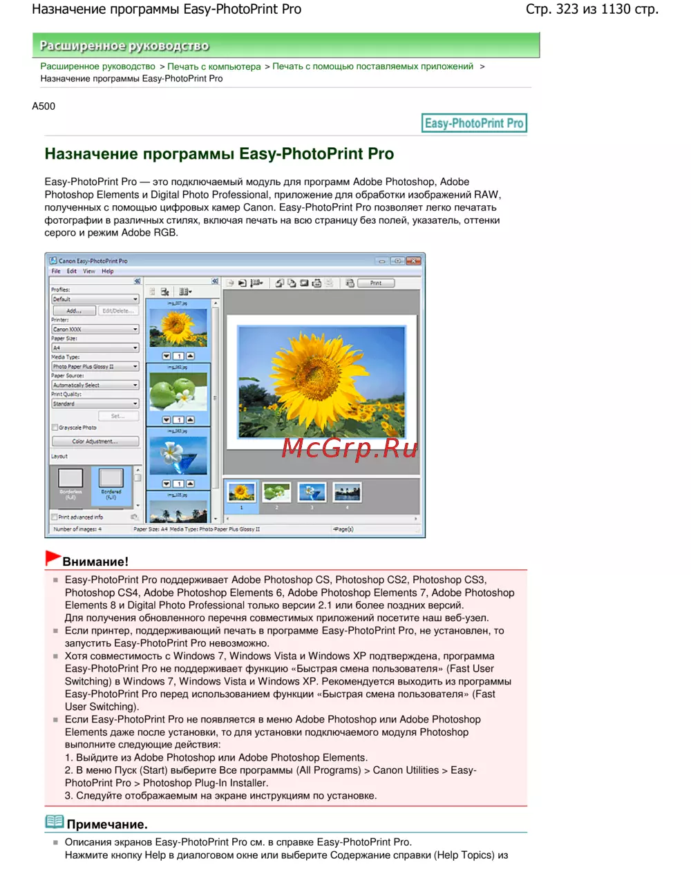 Стр. 323 из 1130 стр.Назначение программы Easy-PhotoPrint Pro