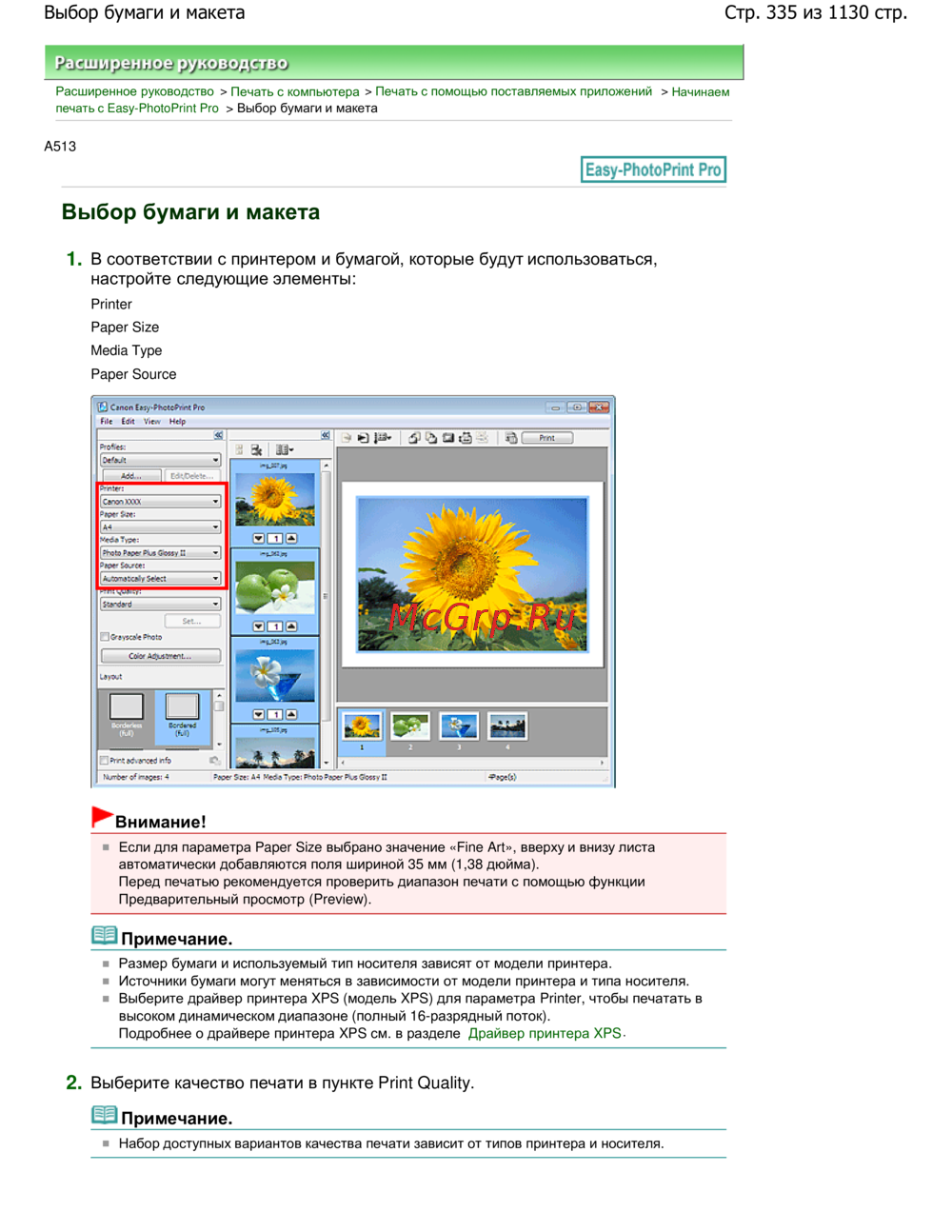 Стр. 335 из 1130 стр.Выбор бумаги и макета