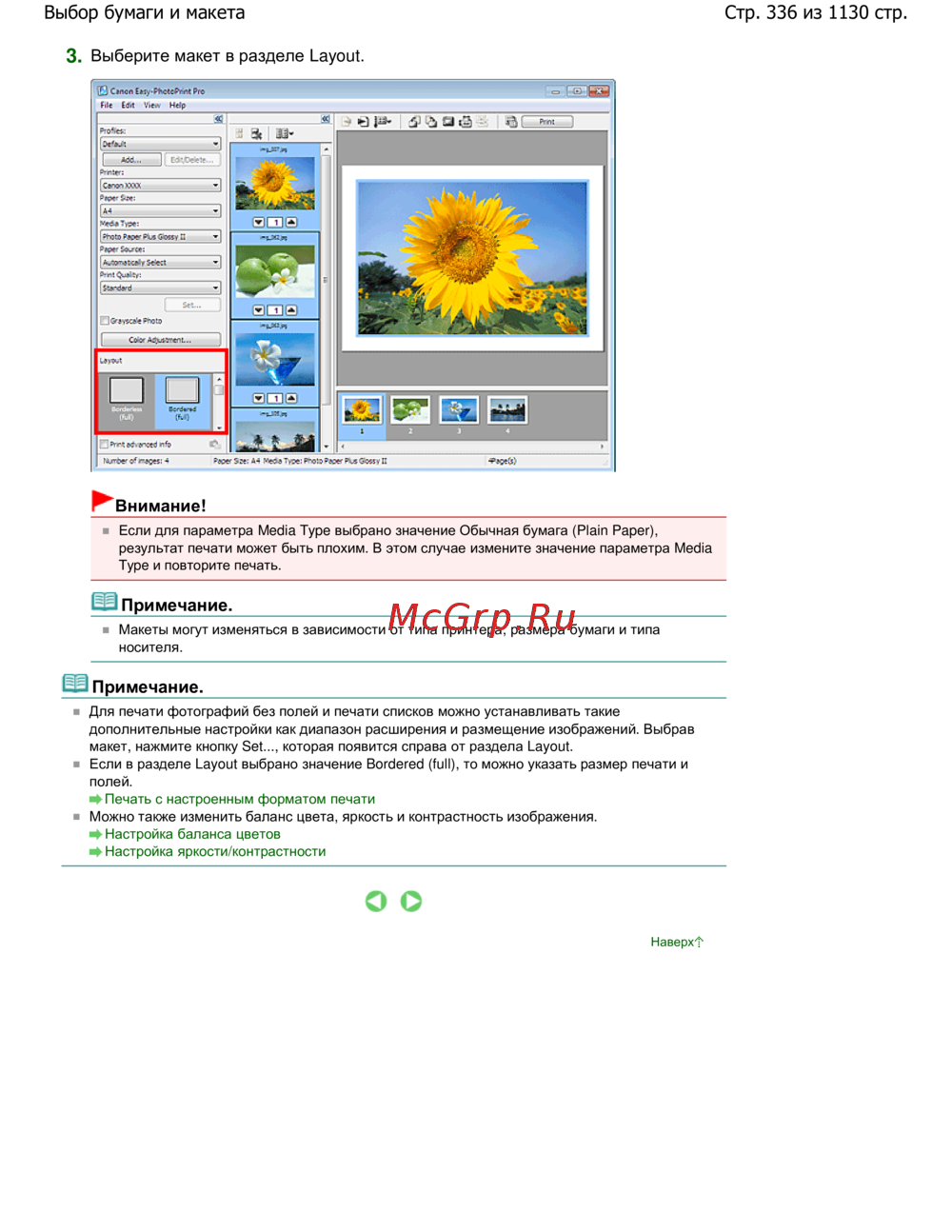 Стр. 336 из 1130 стр.Выбор бумаги и макета
