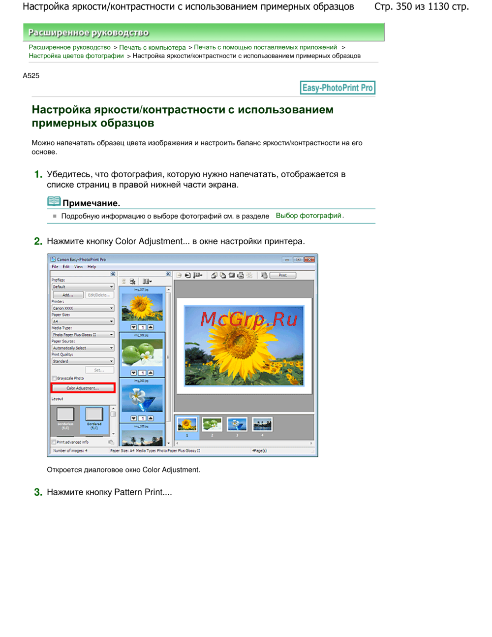 Стр. 350 из 1130 стр.Настройка яркости/контрастности с использованием примерных образцов