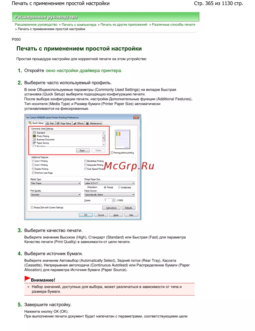 Стр. 365 из 1130 стр.Печать с применением простой настройки