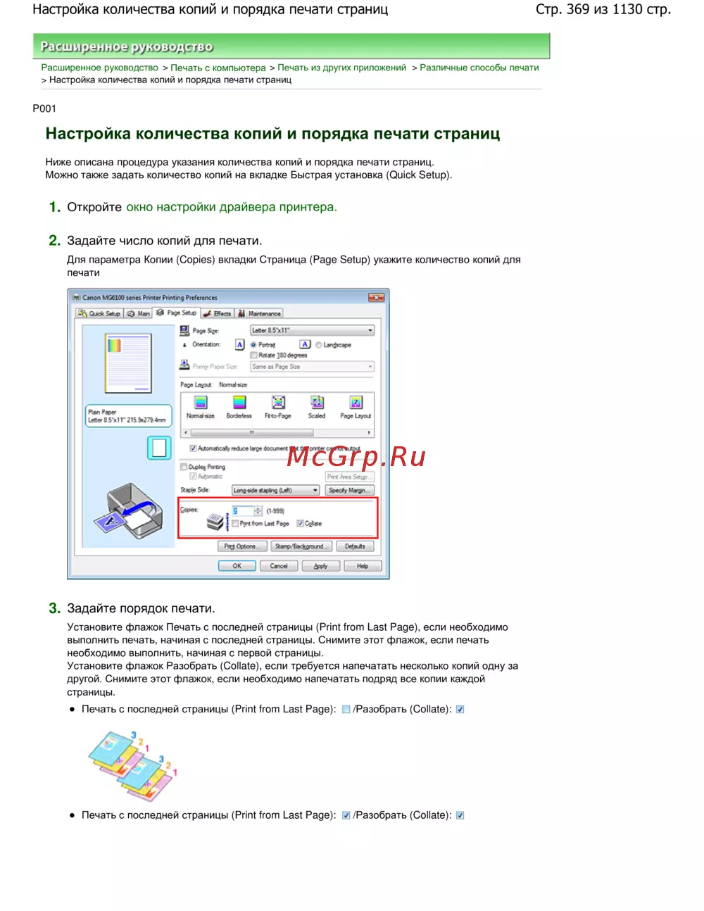 Canon Pixma MG6140 — настройка копий и порядка печати страниц в принтере [369/1130]