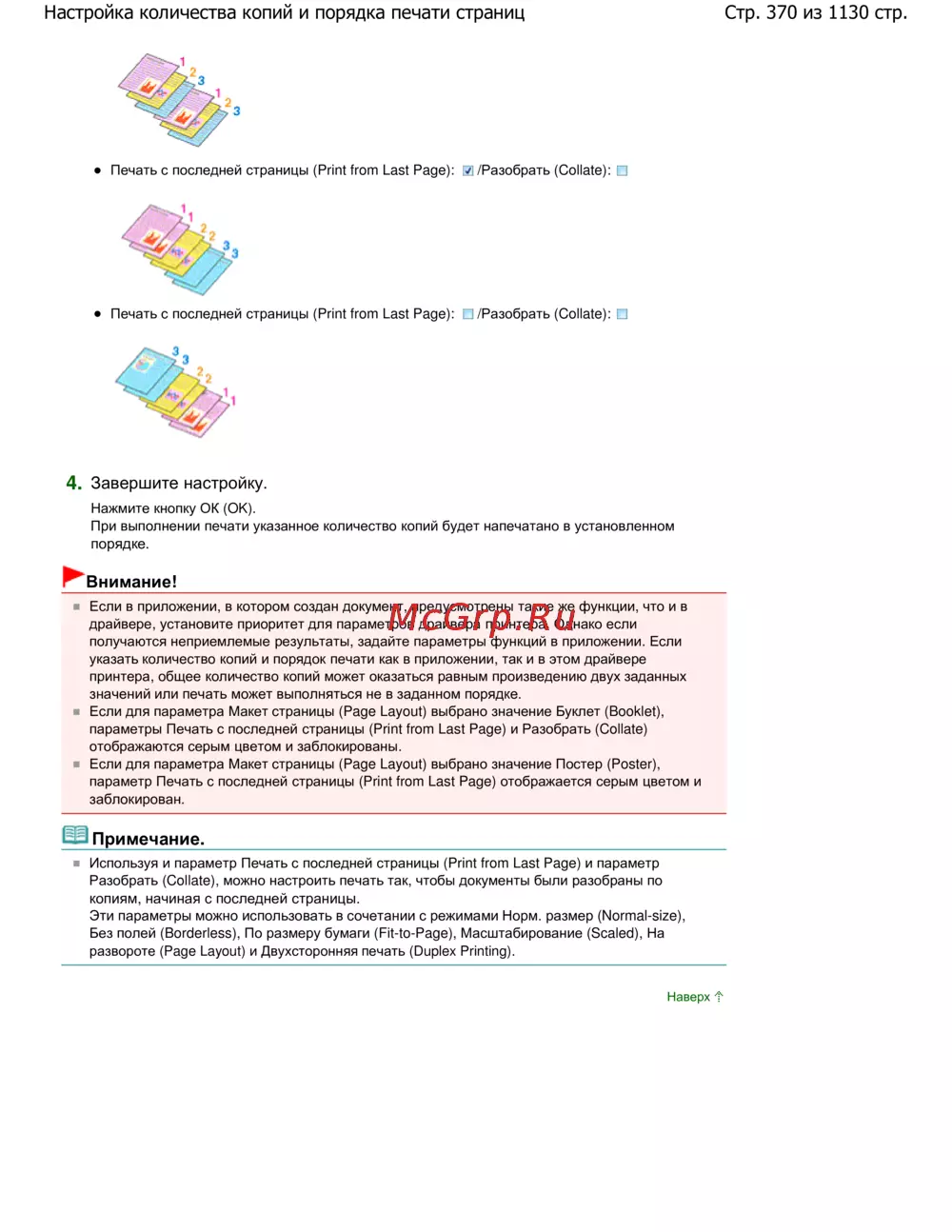 Стр. 370 из 1130 стр.Настройка количества копий и порядка печати страниц