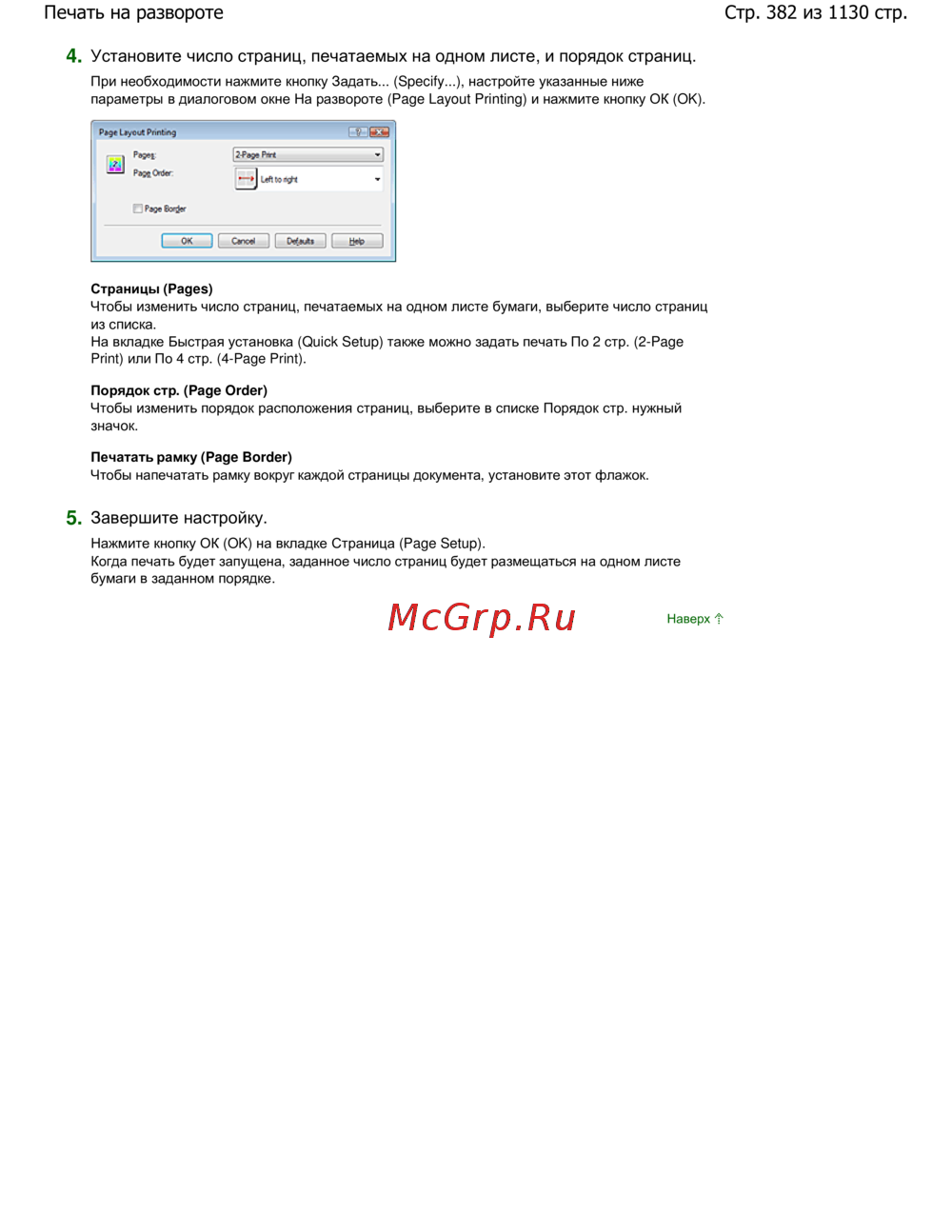 Установите число страниц, печатаемых на одном листе, и порядок страниц.