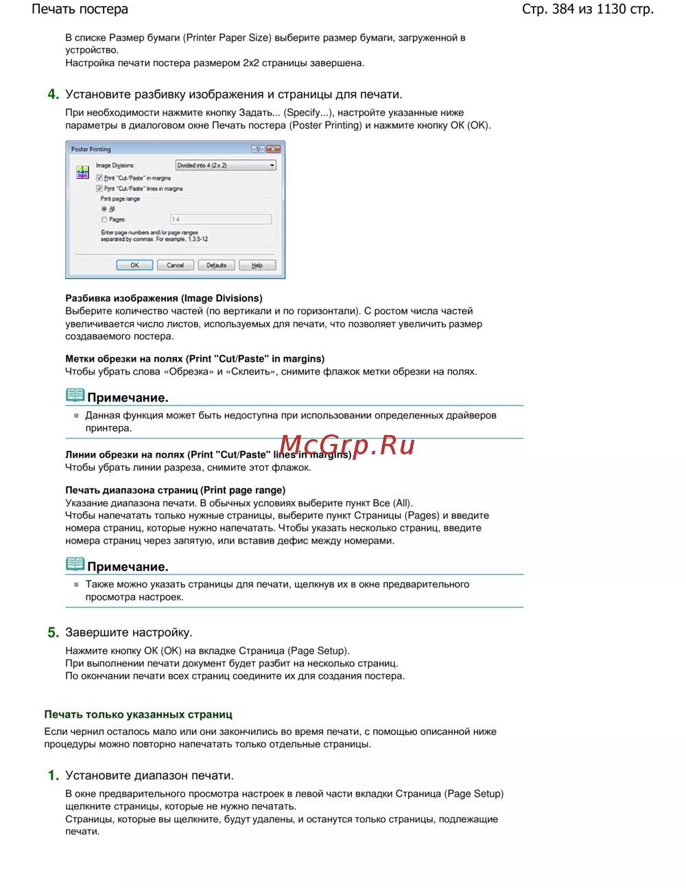 Canon Pixma MG6140 — настройка печати постеров: разбивка страниц и параметры печати [384/1130]