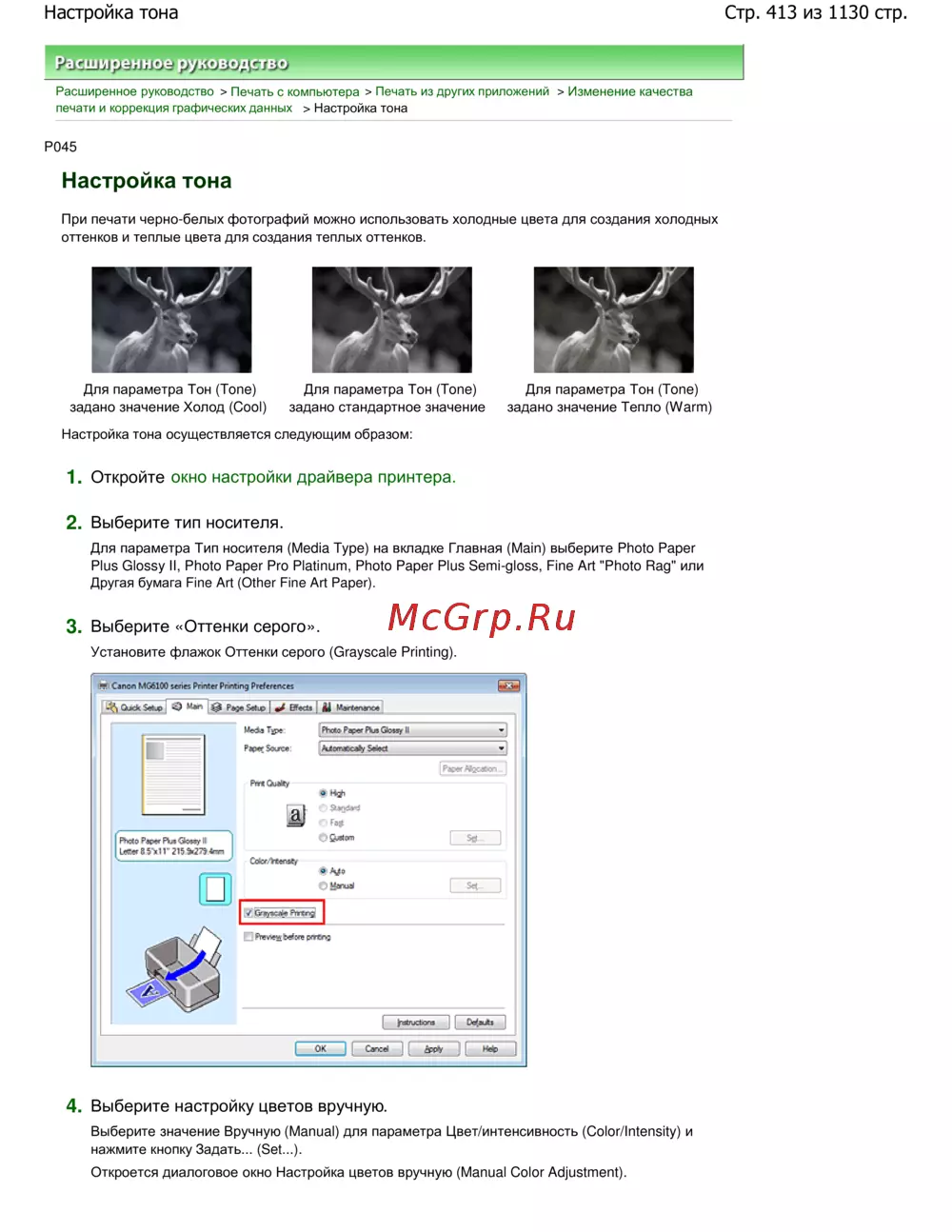 Canon Pixma MG6140 — настройка тона для печати черно-белых фотографий [413/1130]