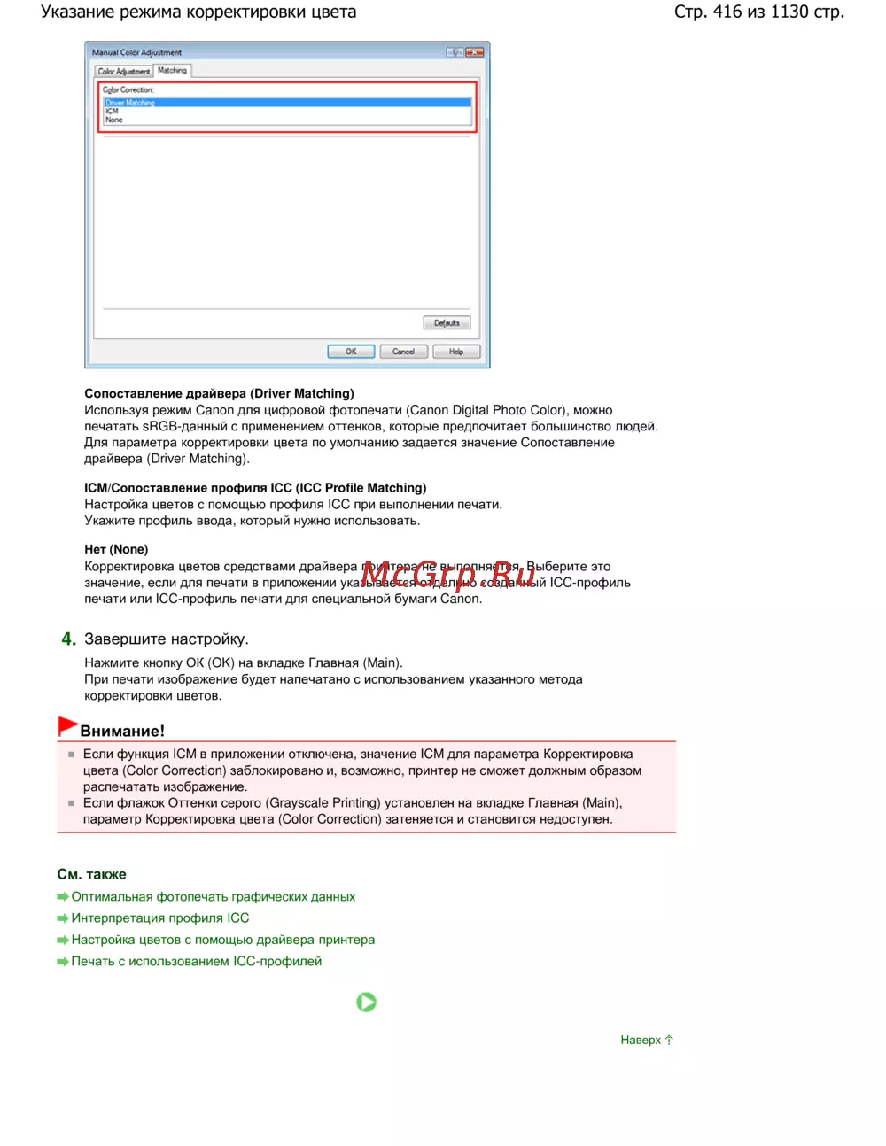 Стр. 416 из 1130 стр.Указание режима корректировки цвета