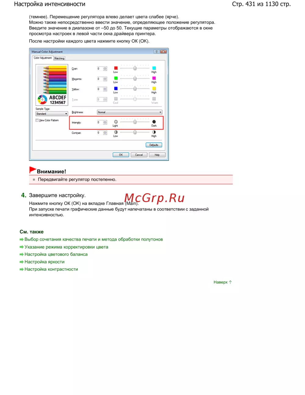 Стр. 431 из 1130 стр.Настройка интенсивности