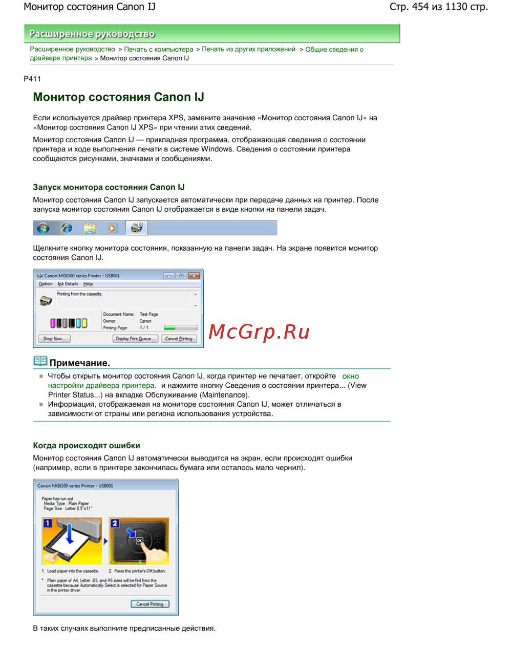 Стр. 454 из 1130 стр.Монитор состояния Canon IJ