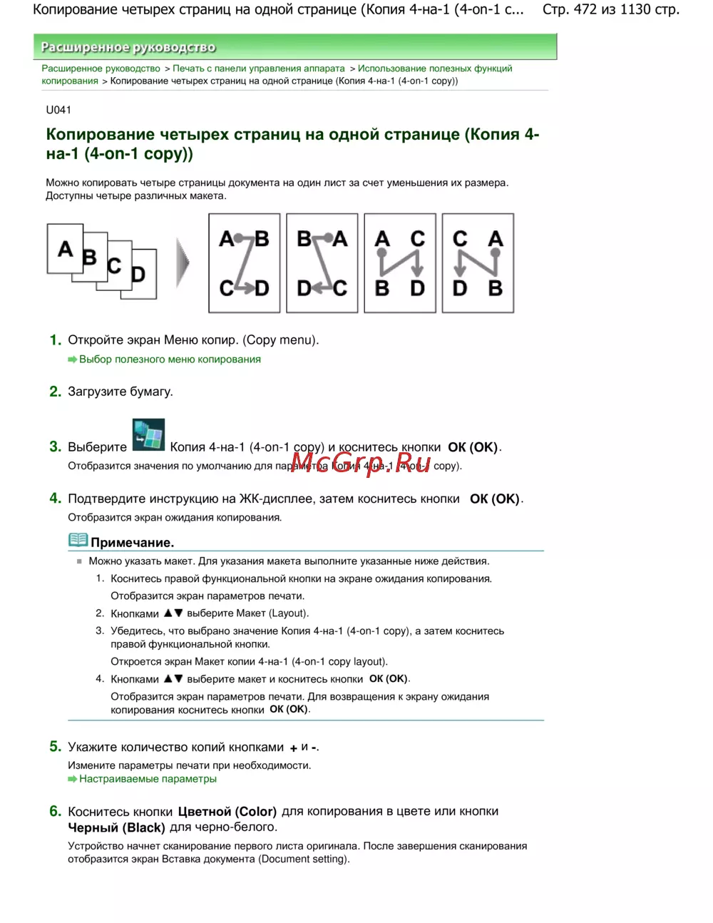 Стр. 472 из 1130 стр.Копирование четырех страниц на одной странице (Копия 4-на-1 (4-on-1 c...