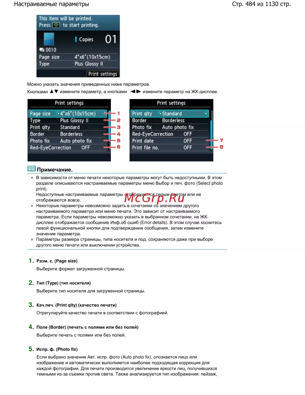 Canon Pixma MG6140 — настройка параметров печати: размер, тип носителя, качество и исправление фото [484/1130]