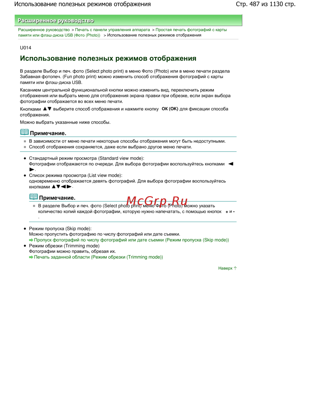 Canon Pixma MG6140 — режимы отображения фотографий: настройка печати с карты памяти и USB [487/1130]