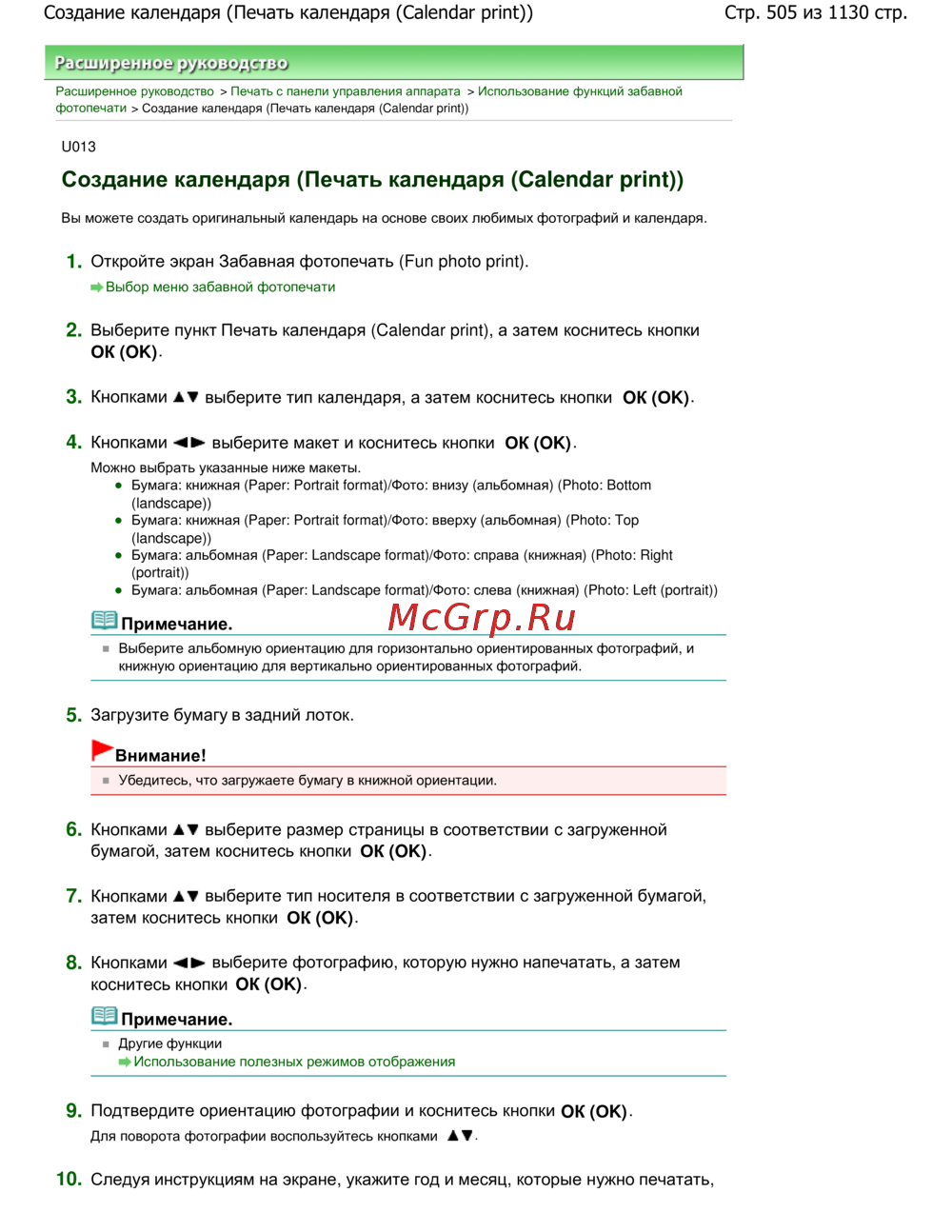 Стр. 505 из 1130 стр.Создание календаря (Печать календаря (Calendar print))