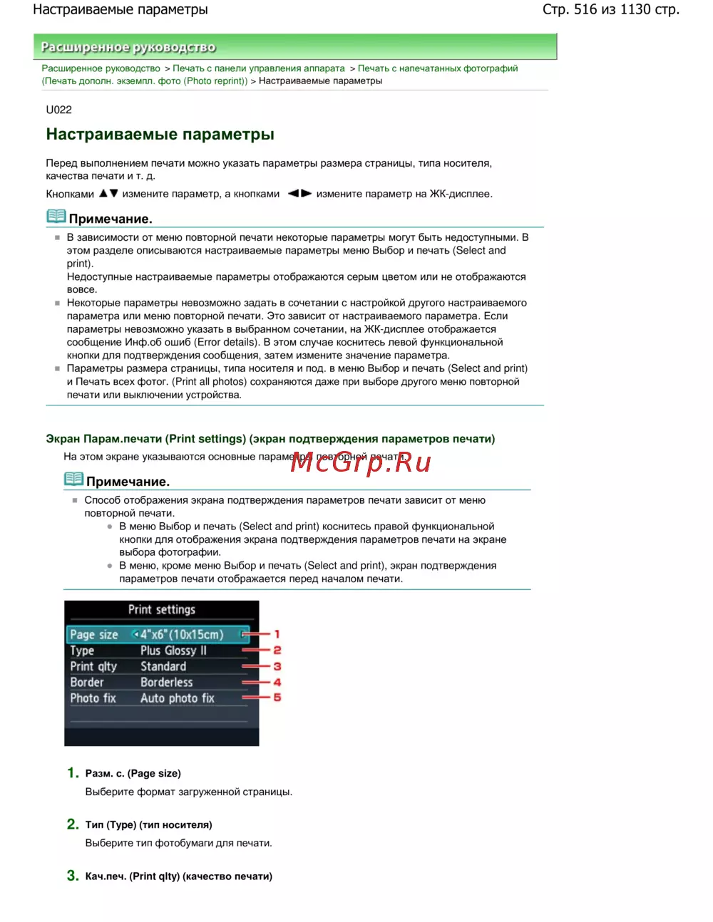Canon Pixma MG6140 — настраиваемые параметры печати: руководство по настройке [516/1130]