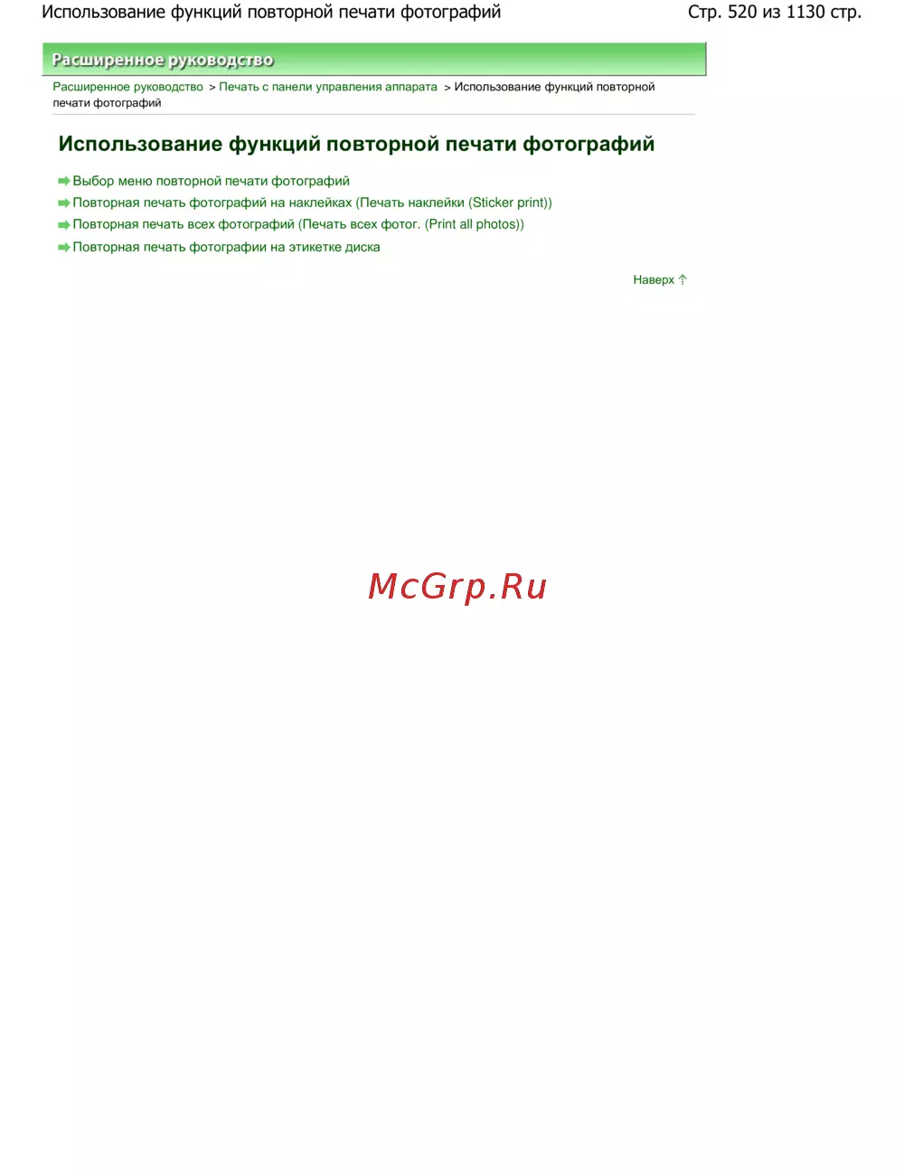Стр. 520 из 1130 стр.Использование функций повторной печати фотографий
