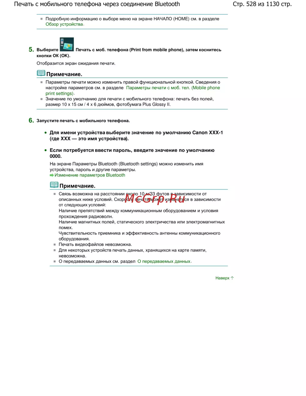 Стр. 528 из 1130 стр.Печать с мобильного телефона через соединение Bluetooth