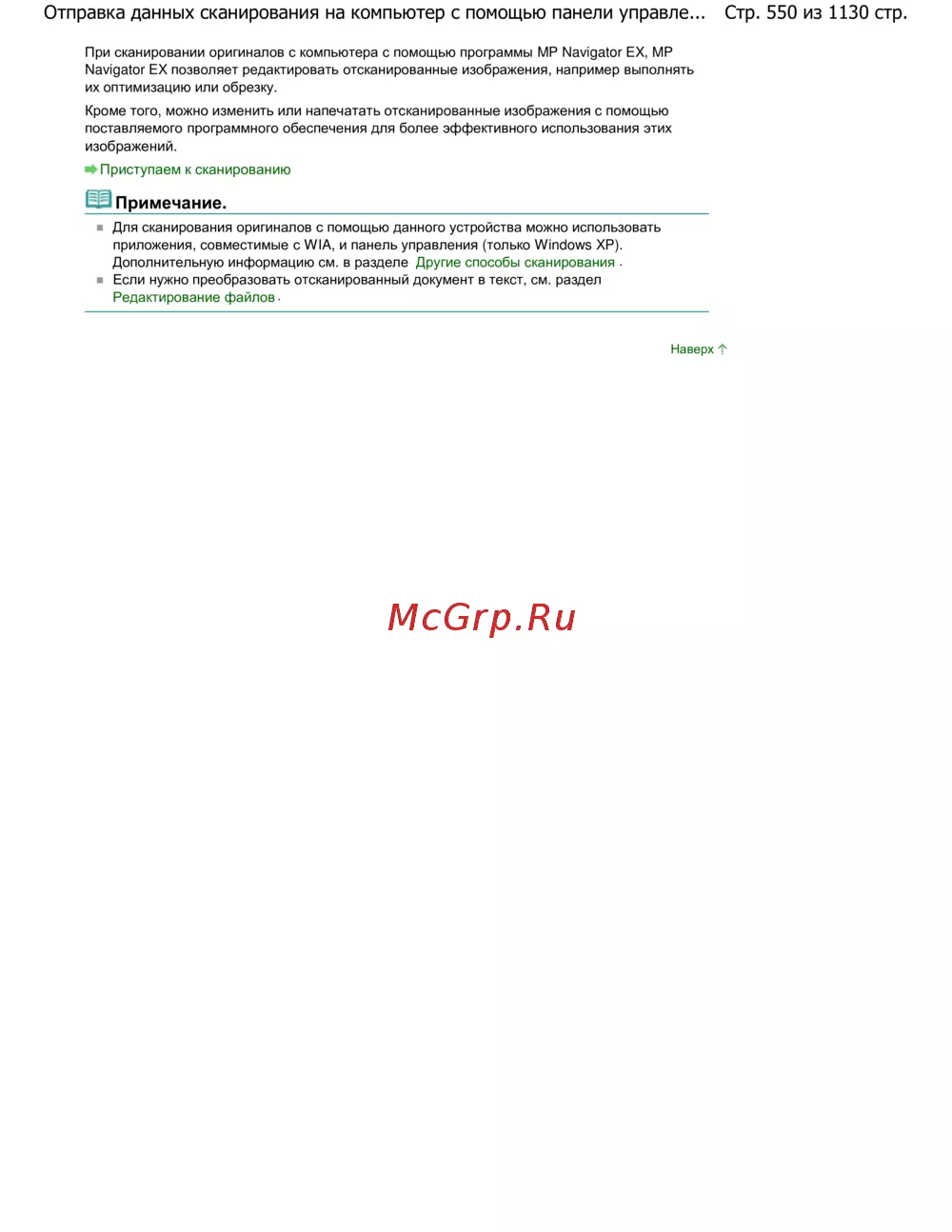 Стр. 550 из 1130 стр.Отправка данных сканирования на компьютер с помощью панели управле...