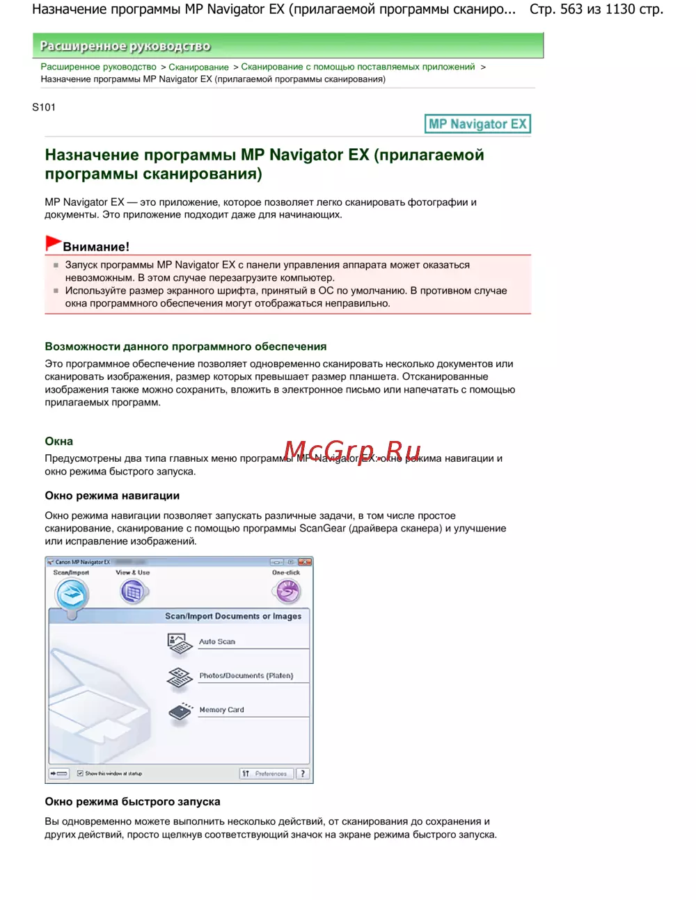 Стр. 563 из 1130 стр.Назначение программы MP Navigator EX (прилагаемой программы сканиро...